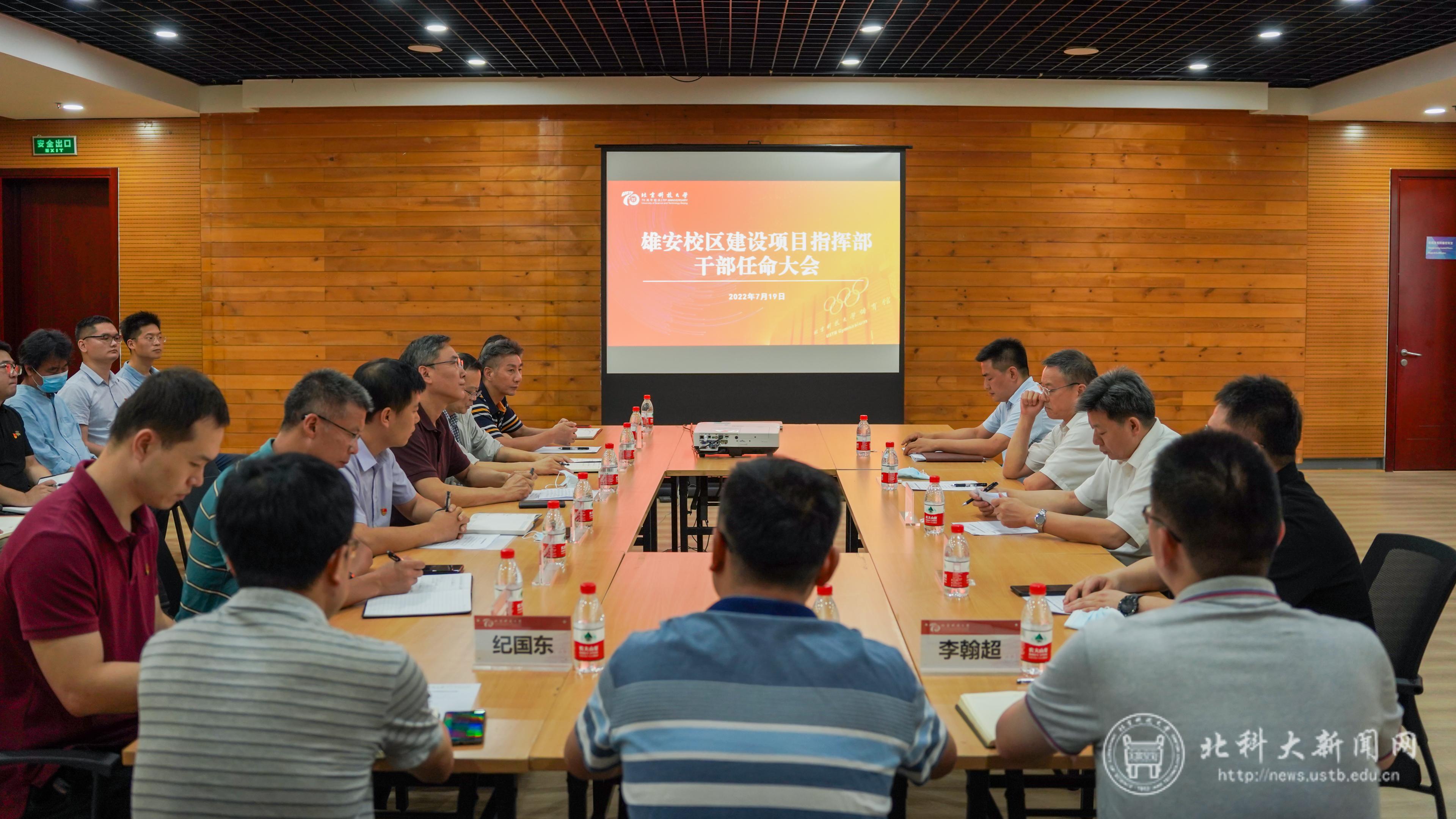 干部任命会后,在指挥部全体党员干部职工的见证下,武贵龙、杨仁树共同为雄安校区建设项目指挥部揭牌。